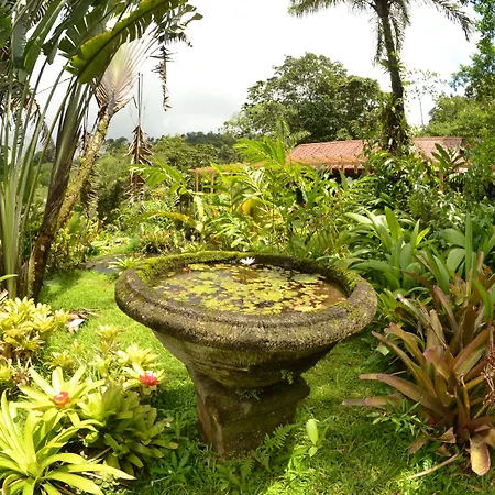 Piscina ao ar livre, bem como jardins exuberantes estão disponíveis em hotel de La Fortuna.